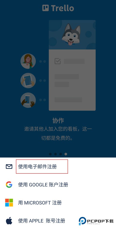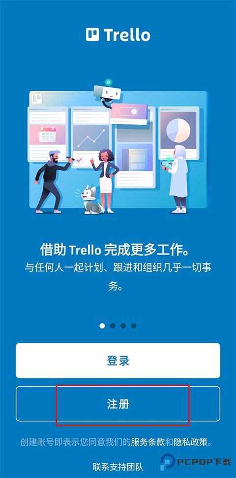 1、首先打开Trello app中文版,点击“注册”。