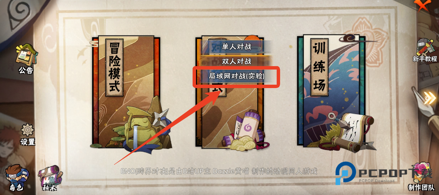 1、在游戏主界面点击【对战模式】,选择第三个【局域网对战】。