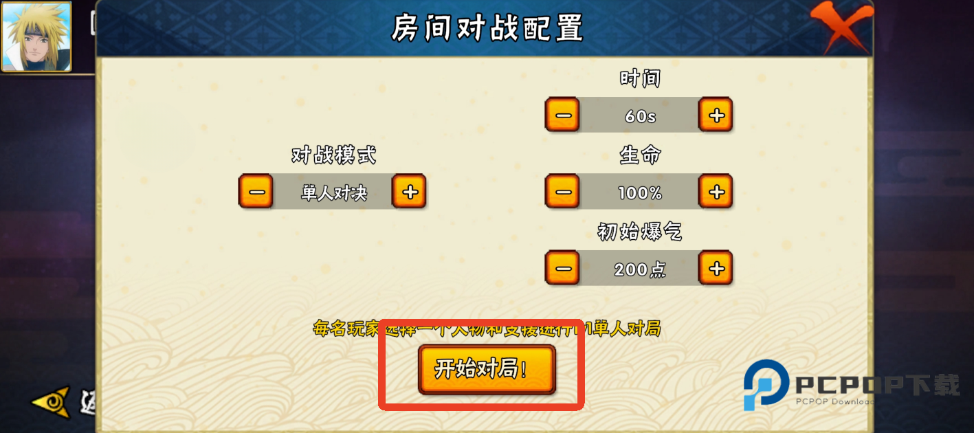 2、点击下方开始创建房间,设置房间对战配置后点击【开始对局】。