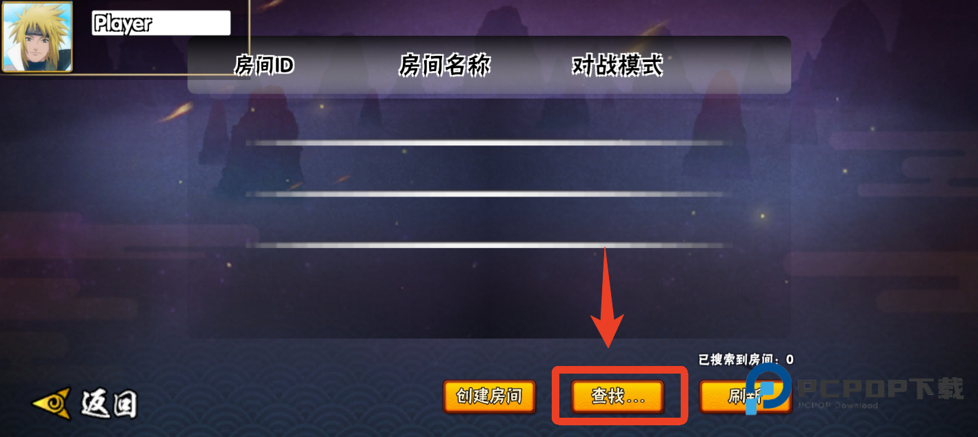 1、在下图页面点击【查找房间】,准备好房间IP和房间端口号码。