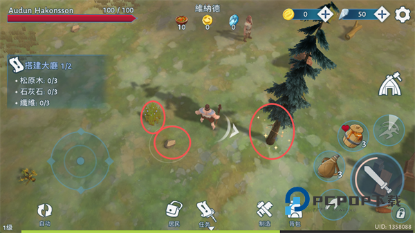 文兰故事游戏中玩家需要砍伐树木、开采矿石和猎杀动物等方式收集资源,维持维京部落的发展。玩家还需要利用物资打造斧头、剑、弓箭等武器,和招募的居民一起与强盗战斗,守护部落的安全。此外,文兰故事游戏还具有如雪林、雪原等多种地形,并且在特定的地点还会触发更有趣的剧情事件!