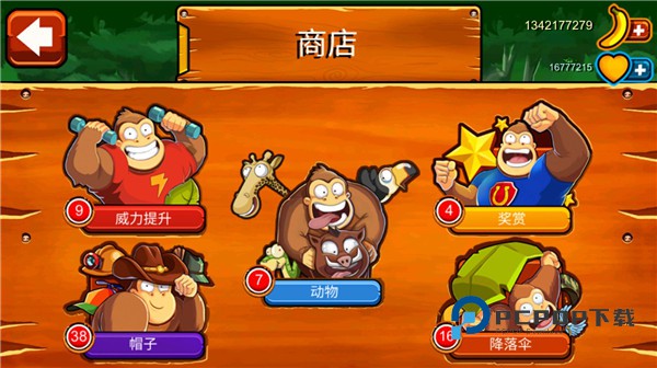 8、你还可以对游戏中的各种道具进行威力的提升,还可以进行装扮你的大猩猩;