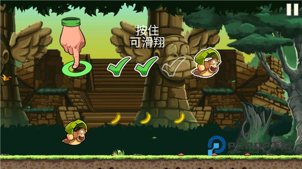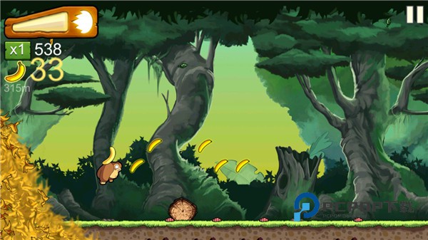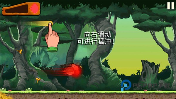 4、尽可能多地收集香蕉来补充你的能量条。用能量条来摧毁障碍,或另觅其他路线,如地下洞穴区域或树梢;