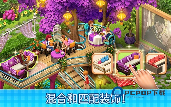 《Manor Cafe》中文名也叫庄园咖啡厅,这是一款结合了消除、闯关玩法的美式经营模拟类休闲小游戏。采用了最经典卡通的3D美式风格画面制作,不仅拥有着各种有趣卡通的人物角色、各式各样有趣的故事内容、再搭整体写实细腻的城市场景建模,可给玩家展现一个充满活力的城市生活,带来与众不同的视觉体验。而且该游戏针对于玩法上也是非常的轻松休闲,简单有趣,在游戏里玩家将担任的是一名咖啡店店长,不但需通过完成各种消除关卡来获取装饰咖啡厅的各类家具和饰品,并展现你的设计才能,从超200多种装饰物品中根据自己喜欢的风格选用漂亮的装饰来翻新咖啡厅,从而可以快速的建立起新面容咖啡馆以外。其作为一款美食相关的经营模拟来说,收集并解锁新的菜谱也是必不可少上午,只有不断学习研发新的食谱和开发各种快餐美食,才能让咖啡厅持续发展,从而吸引更多的顾客到来哦
