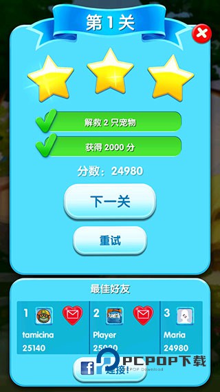 6、主要目的是解救2只宠物,但分数越高过关后的星级评价也就越高。