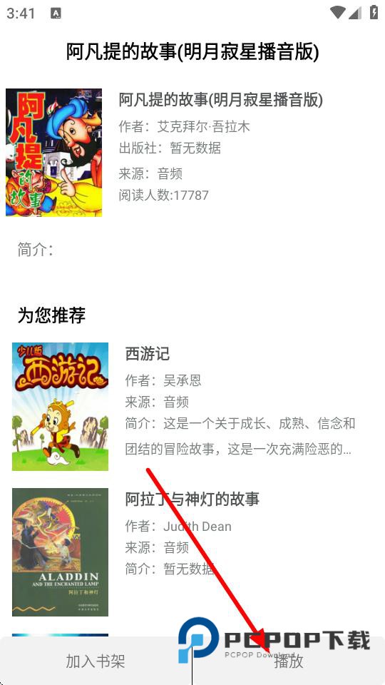 4、点击选中的书籍进入详情页,再点击下方的播放按钮即可开始听书。