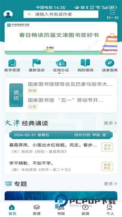 内含丰富的国家图书馆馆藏图书及期刊资源。提供了8类热门电子期刊资源免费下载阅读,提供文章版及原版两种格式,优化阅读体验;
