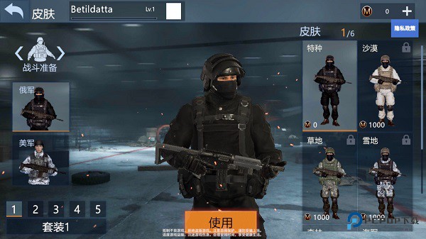 6、此外,战地现代战争模拟器还提供了多款兵种皮肤,如森林、海军、雪地、草地等等,根据地图作战场景的不同,挑选合适的皮肤,更利于玩家隐藏身形。