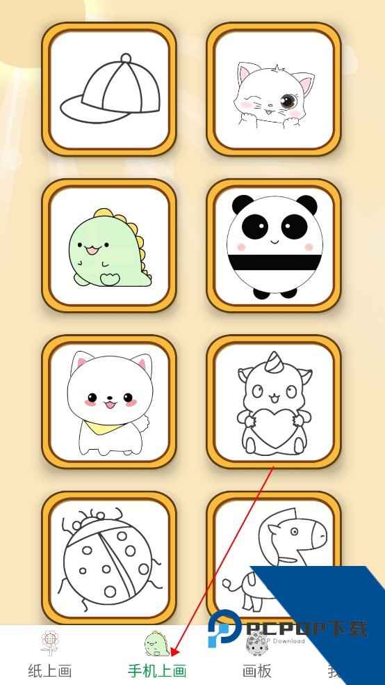 4、除了自己在纸上画,也可以选择软件功能里的“手机上画”,就可以跟引导在手机上作画啦!