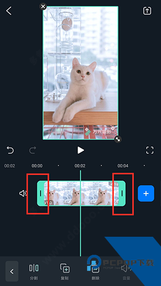 2、选中视频后,拖动视频两端的橙色边框,快速进行视频修剪