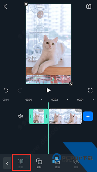3、拖动视频定位视频位置,点击“分割“将视频分割成多段