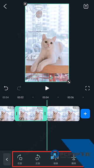 4、点击“旋转”可以将视频右旋、左旋、镜像、翻转