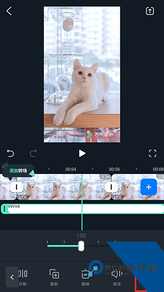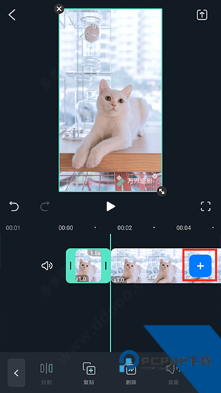 1、点击时间轴上的“+”,从相册中添加新的视频片段