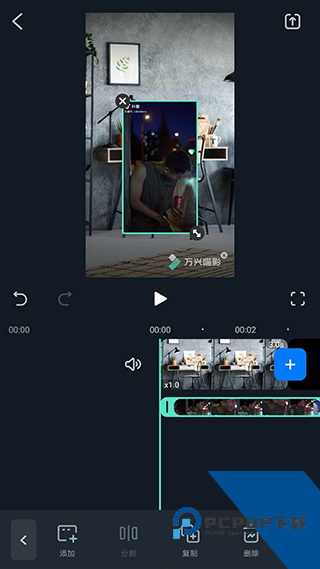 1、点击底部“画中画”选项,选择相册中想要添加的视频素材,添加为画中画效果