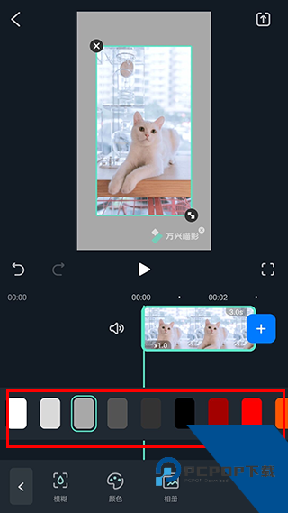 3、选择“背景”,在这里可以为视频添加背景模糊效果,移动滑竿设置模糊强度