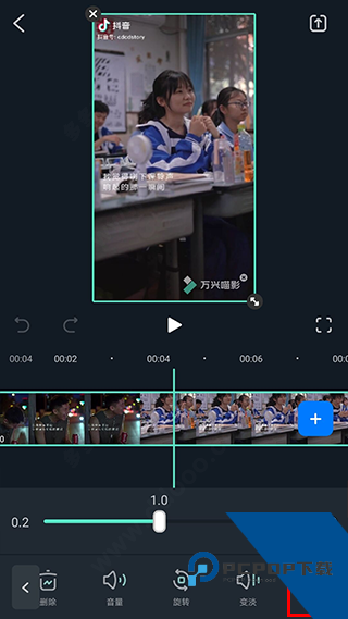 选中需要进行操作的视频片段,在底部工具栏中找到“变速”选项,移动滑竿调节速度效果