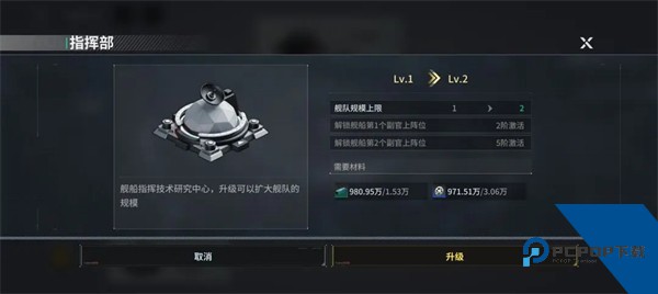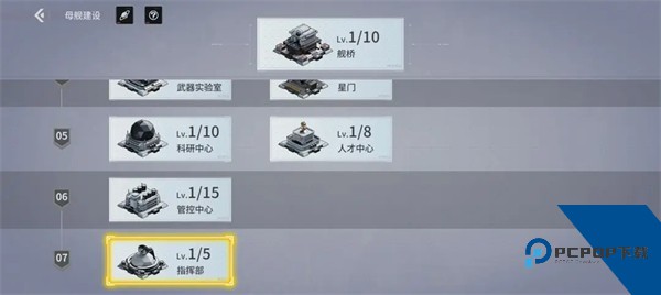 舰船上阵位随母舰建设中的指挥部等级提高而解锁。