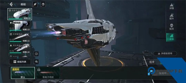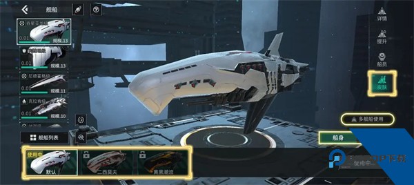 点击【舰船皮肤】页面可自定义舰船皮肤,皮肤分为船身和尾焰,点击多舰船使用可批量应用皮肤。