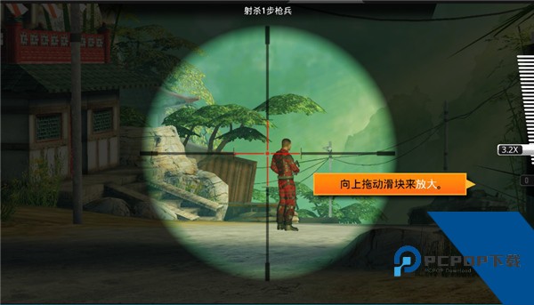 4、在这里我们要做的就是消灭关卡内的目标敌人,瞄准后轻按子弹按钮射击敌人