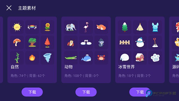 5、用户还可以点击【主题素材】将植物大战僵尸的特有素材进行添加,然后再依次添加特效、道具等属性即可完成植物大战僵尸的游戏开发