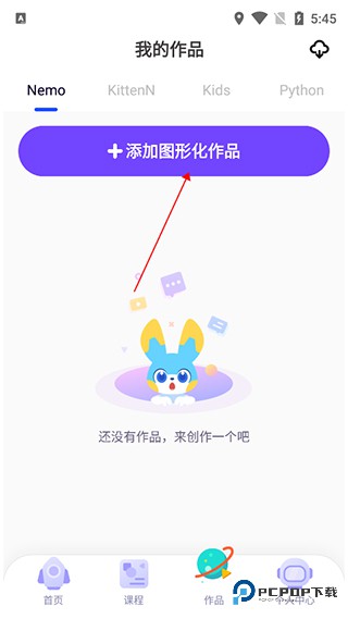 1、用户登录应用后可以前往作品模块下的Nemo页面下点击【添加图形化作品】按钮