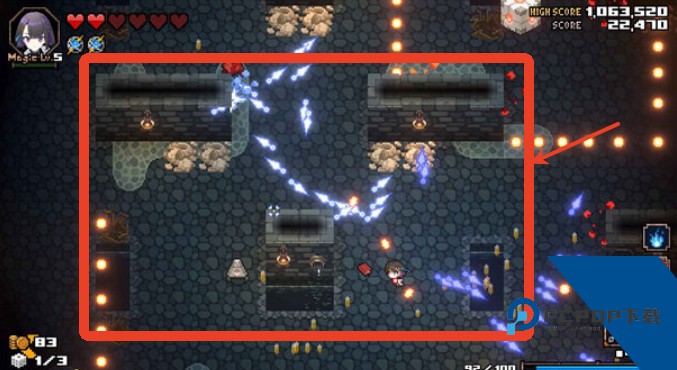 角色所发射的弹幕并非固定不变,玩家可通过自由组合超过20种不同的强化道具,改变射击的形态、属性与效果。这些道具将在每次探索中随机出现,意味着每一次进入地下城,你都有可能搭配出全新的弹幕组合,创造出独一无二的战斗风格。