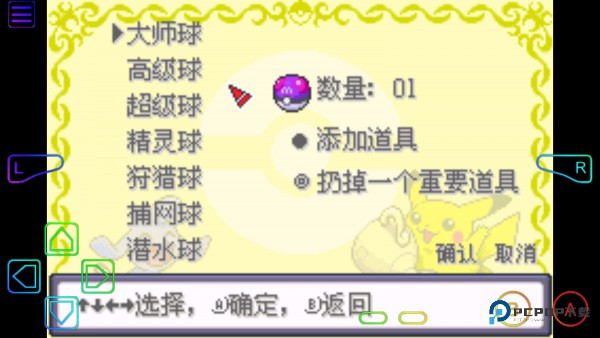 开局先设置游戏ID昵称,按下select按键上方的大小写切换按钮,可自由切换中文、英文及数字格式;借助myboy模拟器自带的RL按键,还能快速上下翻页调整设置。