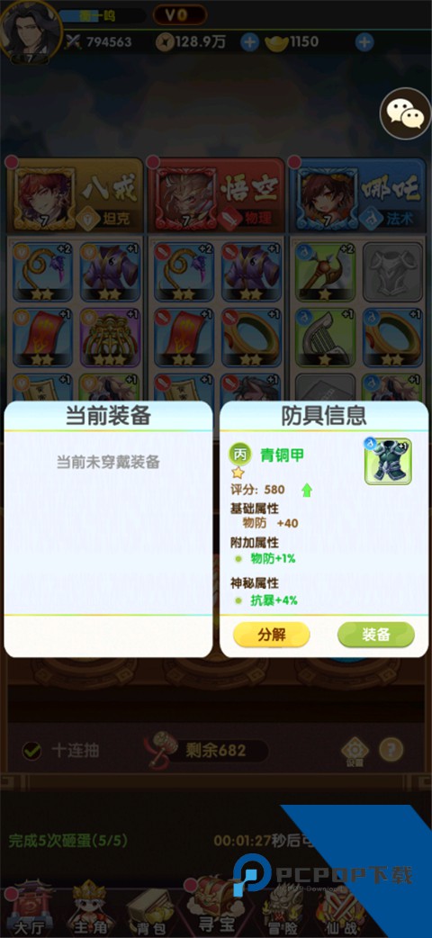 3、当获取当前属性高的装备就可以替换,相反就可以分解;