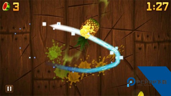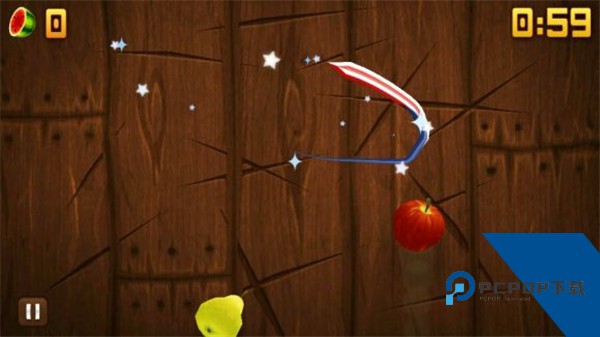 特效:在街机和禅境模式中会使水果额外反弹一次(说白了,就是没有切到的水果再重新抛一次。)