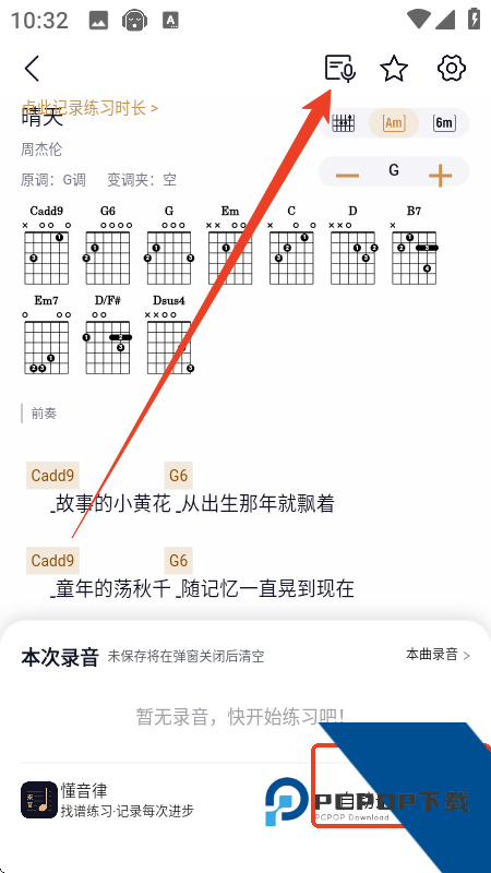 3、进入乐谱详情界面,点击上方【录音】,开启【自动录音】即可